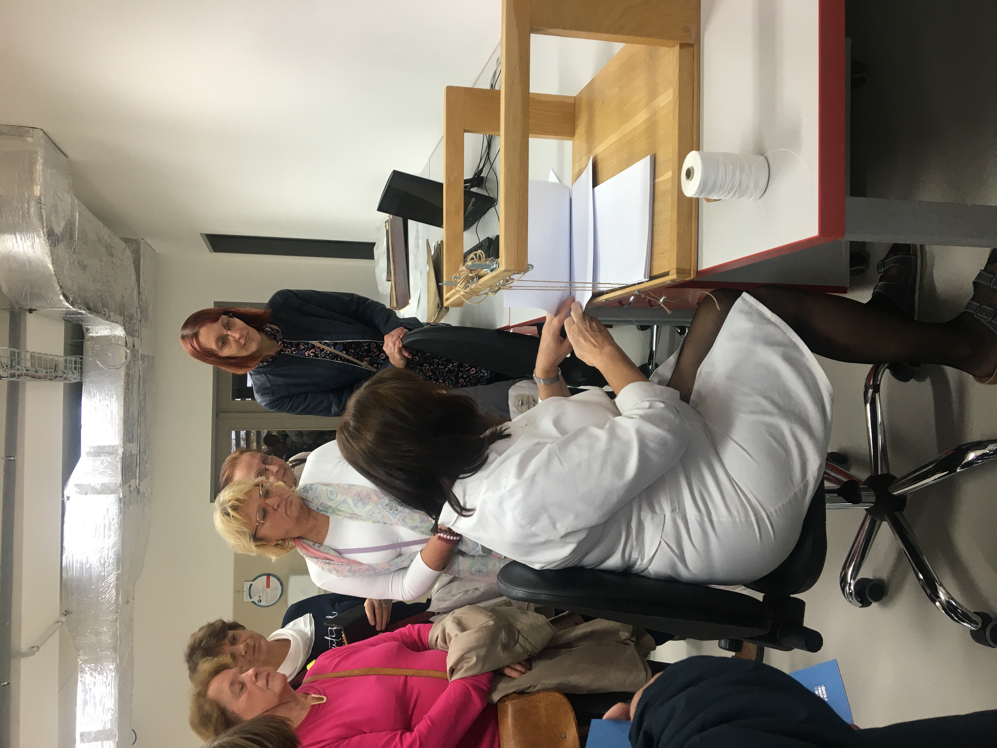 15. 10. 2024 exkurze do depozitáře Vědecké knihovny v Olomouci. | Moderním pracovištěm nás obětavě provázela paní knihovnice Tálová. | Měli jsme možnost vidět několik specializovaných pracovišť na restaurování poškozených knih, knihvazačství a digitalizaci knih. Zde nám pracovnice podaly zasvěcené výklady s ukázkami práce. | (foto Prof. PhDr. Jana Burešová, CSc.)