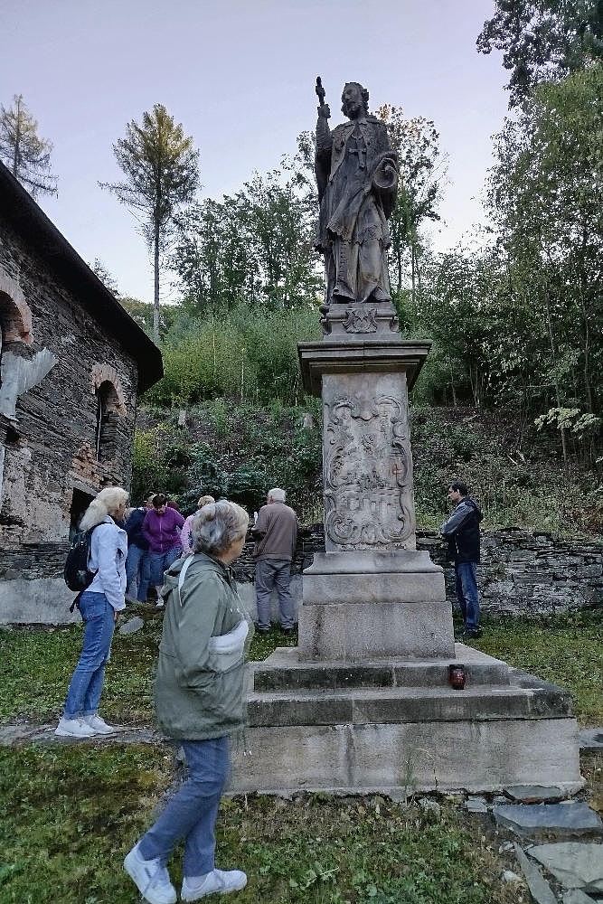 20. 9. 2025 Libavsko | V nádherném pozdně letním počasí jsme exkurzně navštívili Libavsko (Norberčany-Trhavice, Stará Voda, Budišov, Guntramovice). | Velmi zasvěceným, poutavým a obětavým průvodcem nám byl pan Amos Děkaník. | (foto Prof. PhDr. Jana Burešová, CSc. a paní Děkaníková)